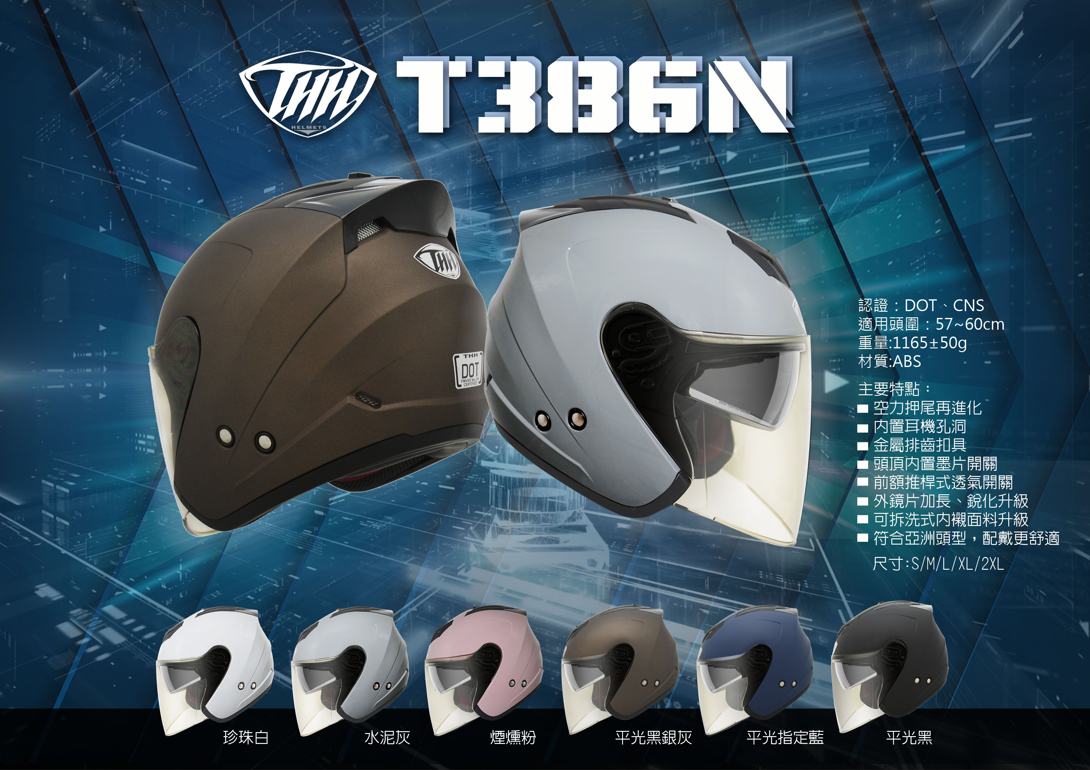 T386N 素色 -男女款 安全帽